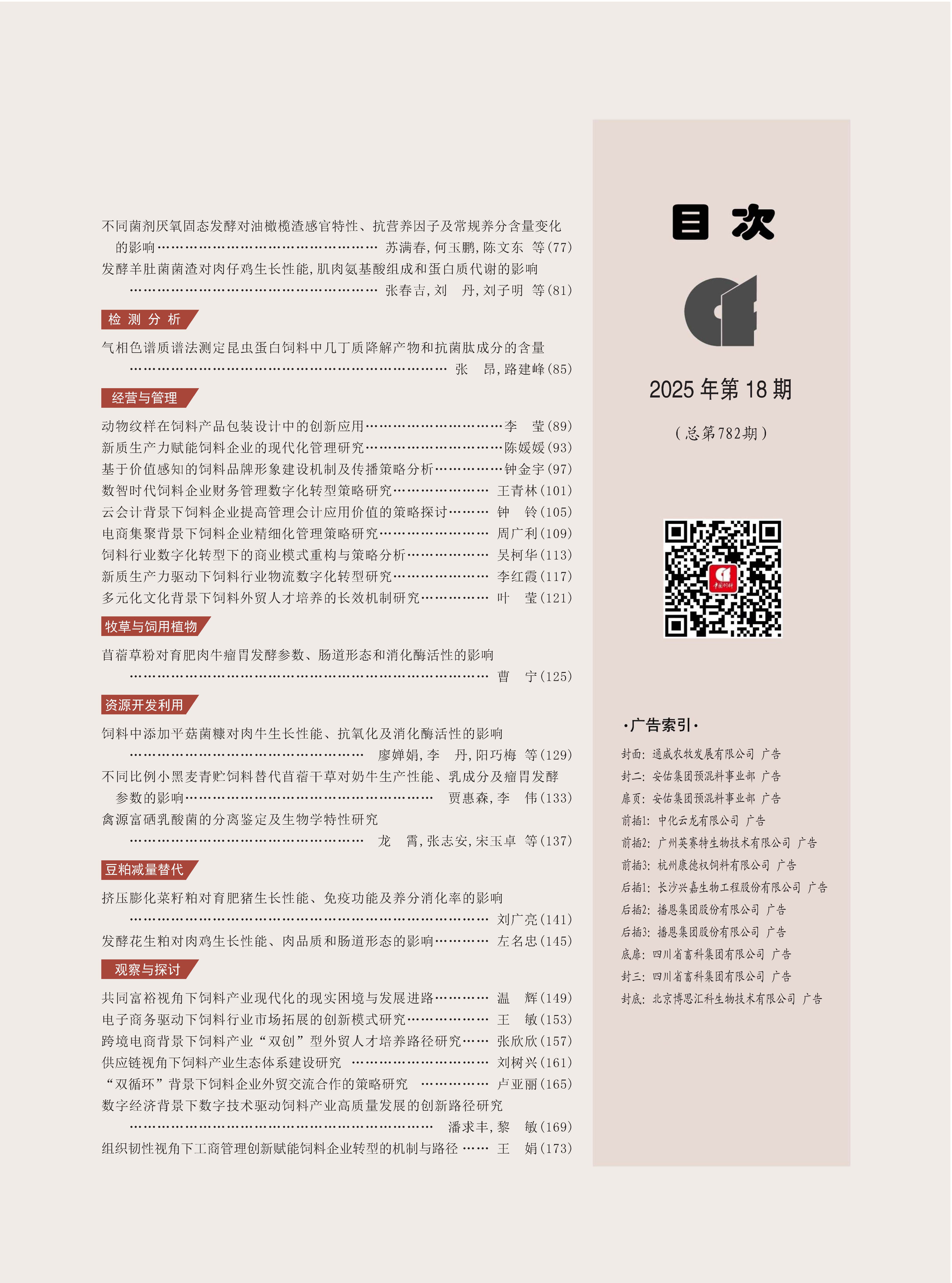 . 《中国饲料》2025-18期目次[J]. 中国饲料, 2025, 1(18): 1-.