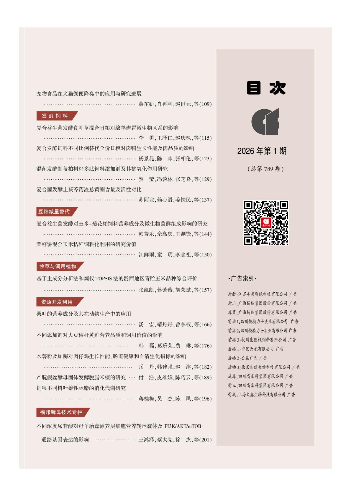 中国饲料 ›› 2026, Vol. 1 ›› Issue (1): 1-.