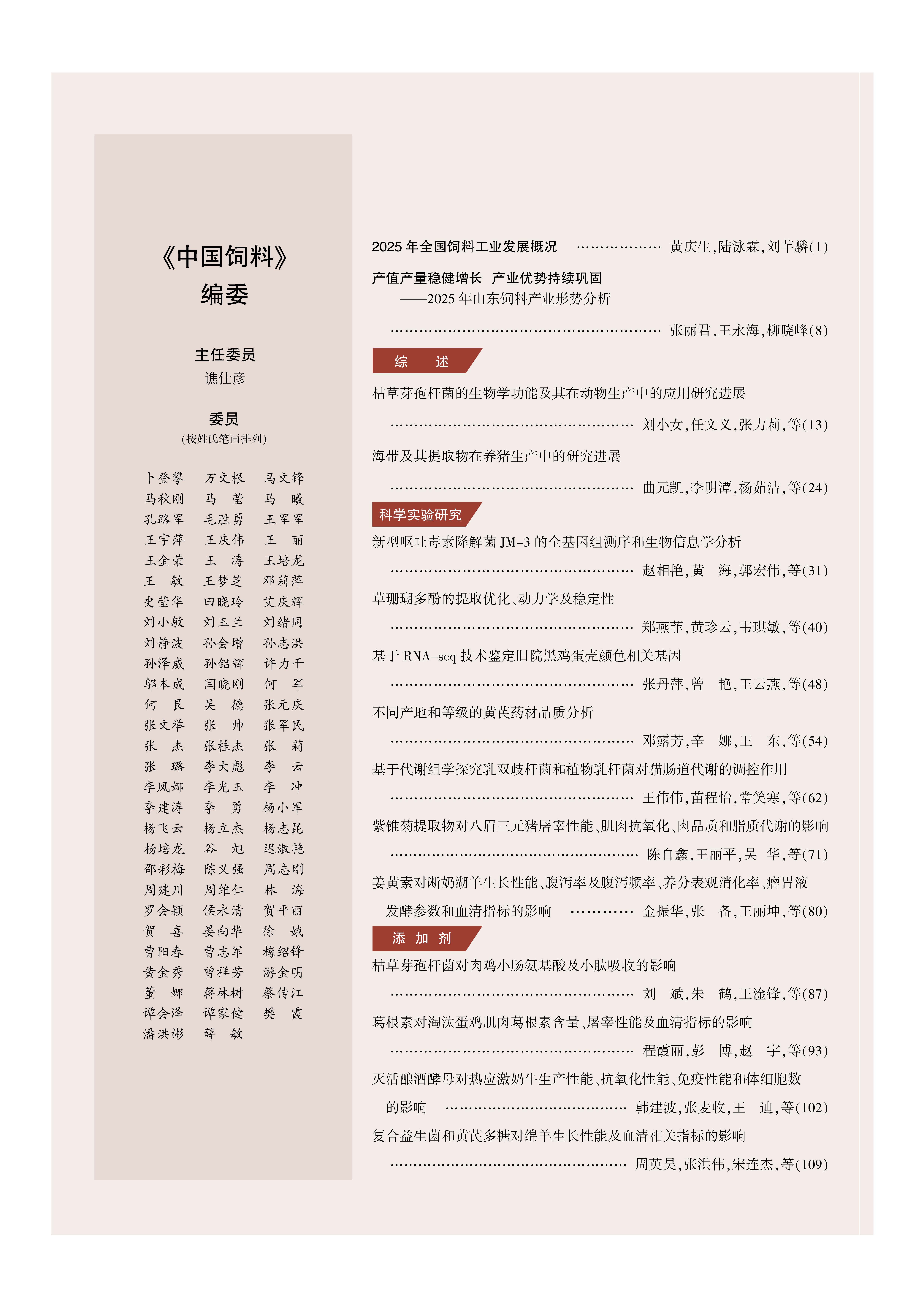 . 《中国饲料》2026-5期目次[J]. 中国饲料, 2026, 1(5): 1-.