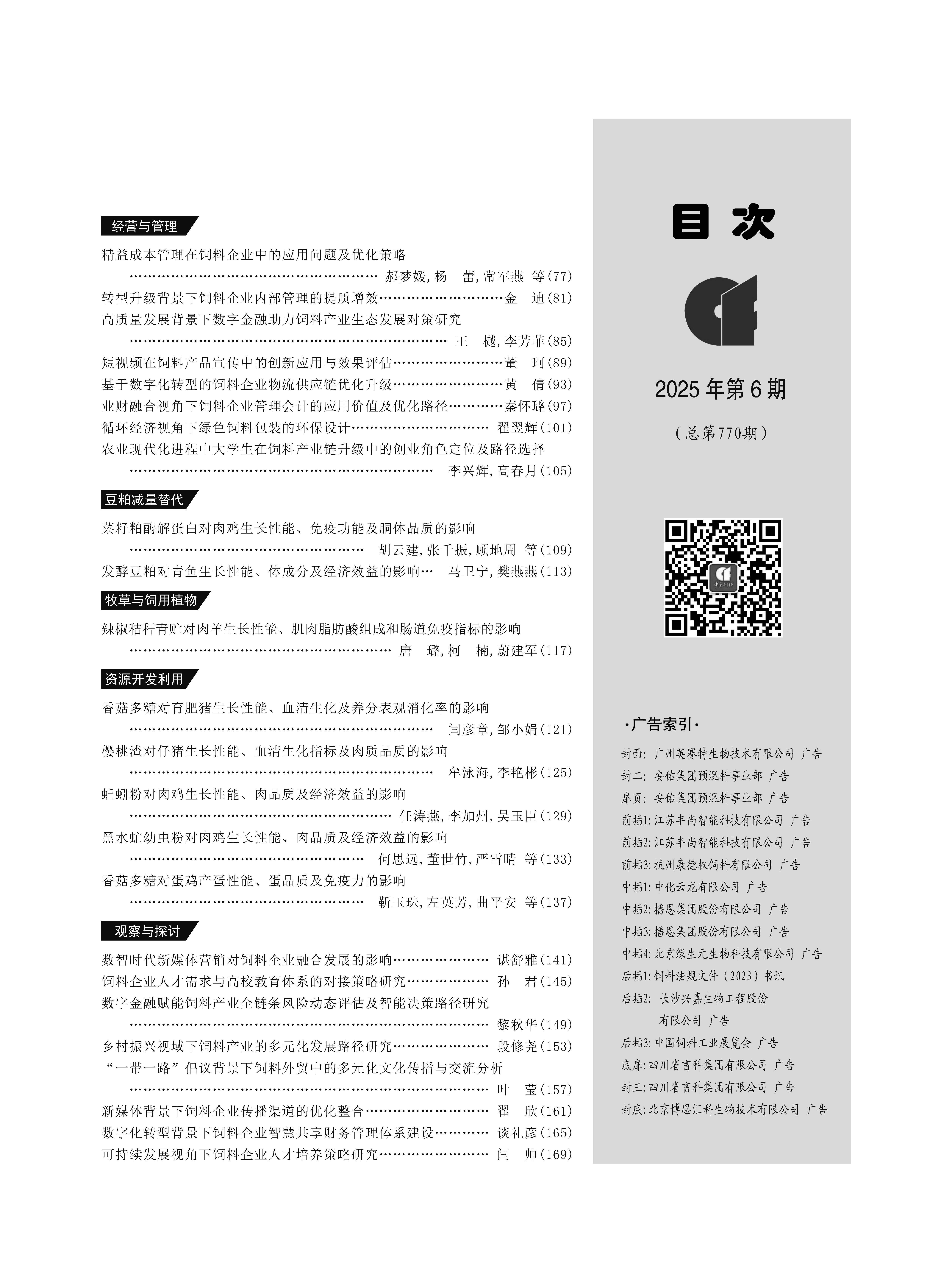 . 《中国饲料》2025-6期目次[J]. 中国饲料, 2025, 1(6): 1-.